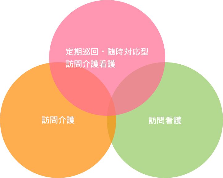 ひまわり倶楽部では、「定期巡回・随時対応型訪問介護看護」「訪問介護」「訪問看護」の