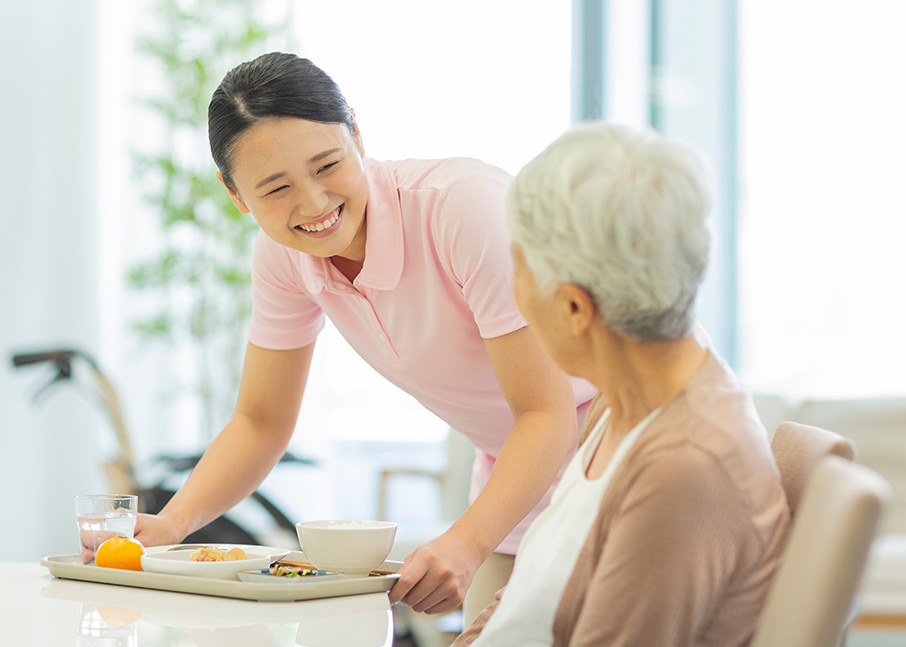 身体の清拭、洗髪、手足浴、入浴介助、食事や排せつなどの支援を行います。